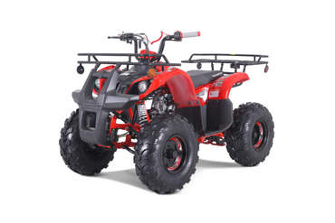 Tao Motor 110cc youth teen ATV includes an automatic transmission with Reverse, a double A-arm front suspension, and a heavy-duty swing arm rear suspension, providing surprising maneuverability for an ATV of its class.